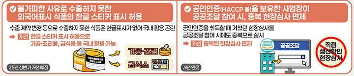 계약 변경 등으로 수출하지 못하는 외국어 표시 식품도 국내용 스티커 부착 후 활용할 수 있도록 허용, 불필요한 폐기를 줄인다.
