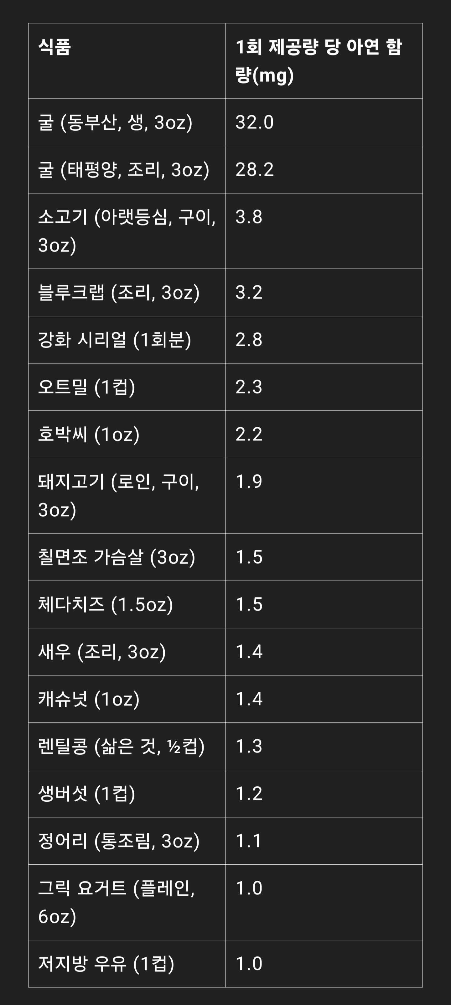 #아연 #면역력 #건강식품 #영양소 #식단관리